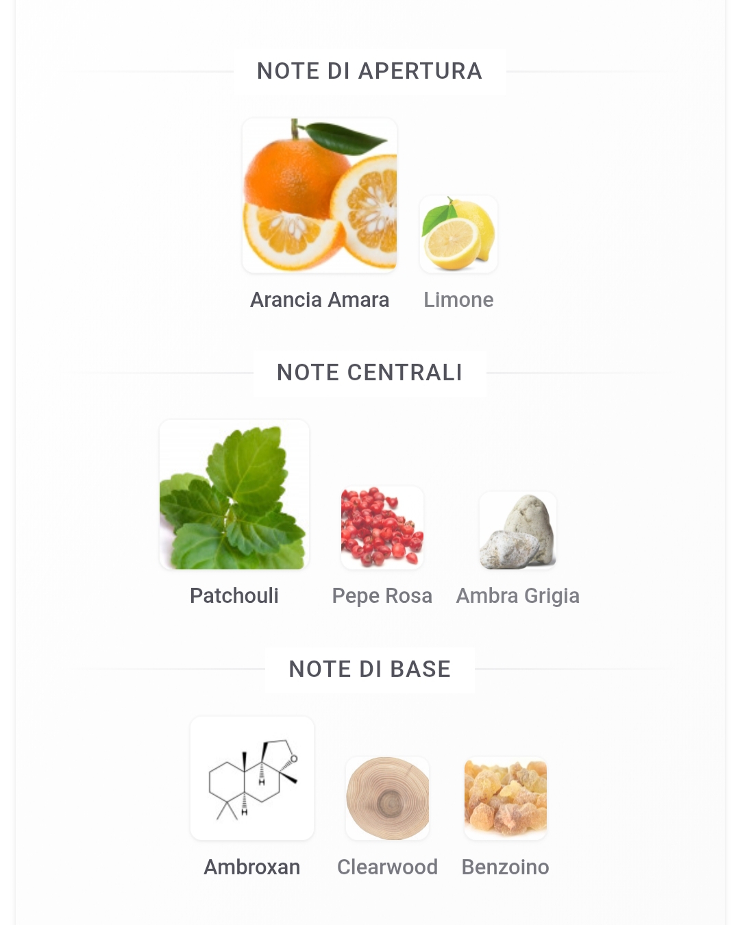 composizione. L'estratto di Elemi infonde al cuore del profumo