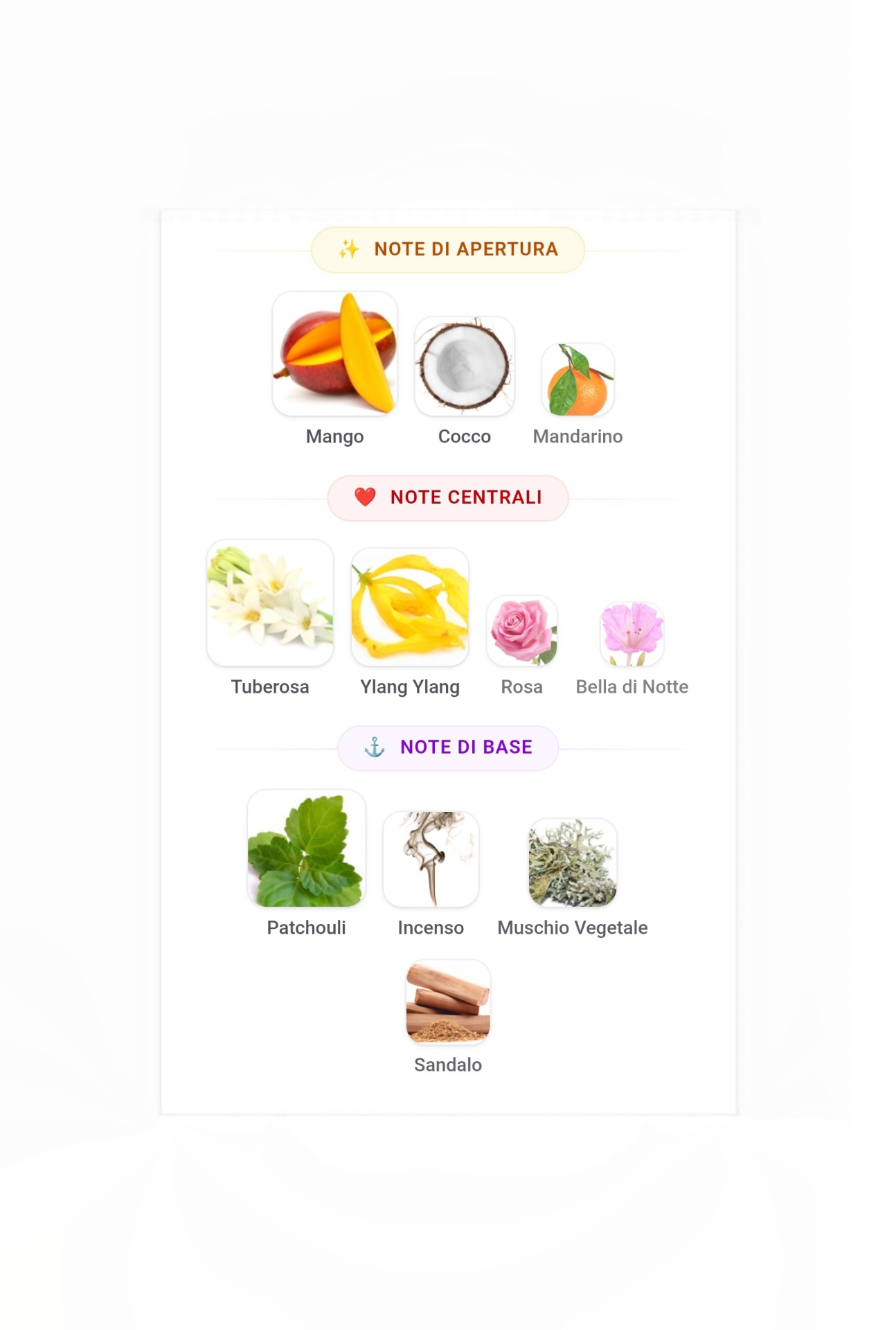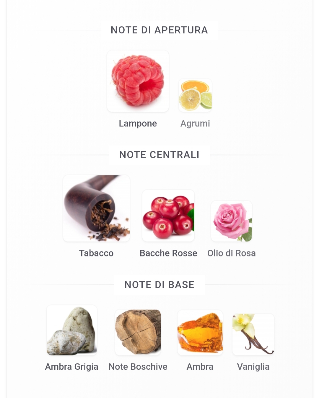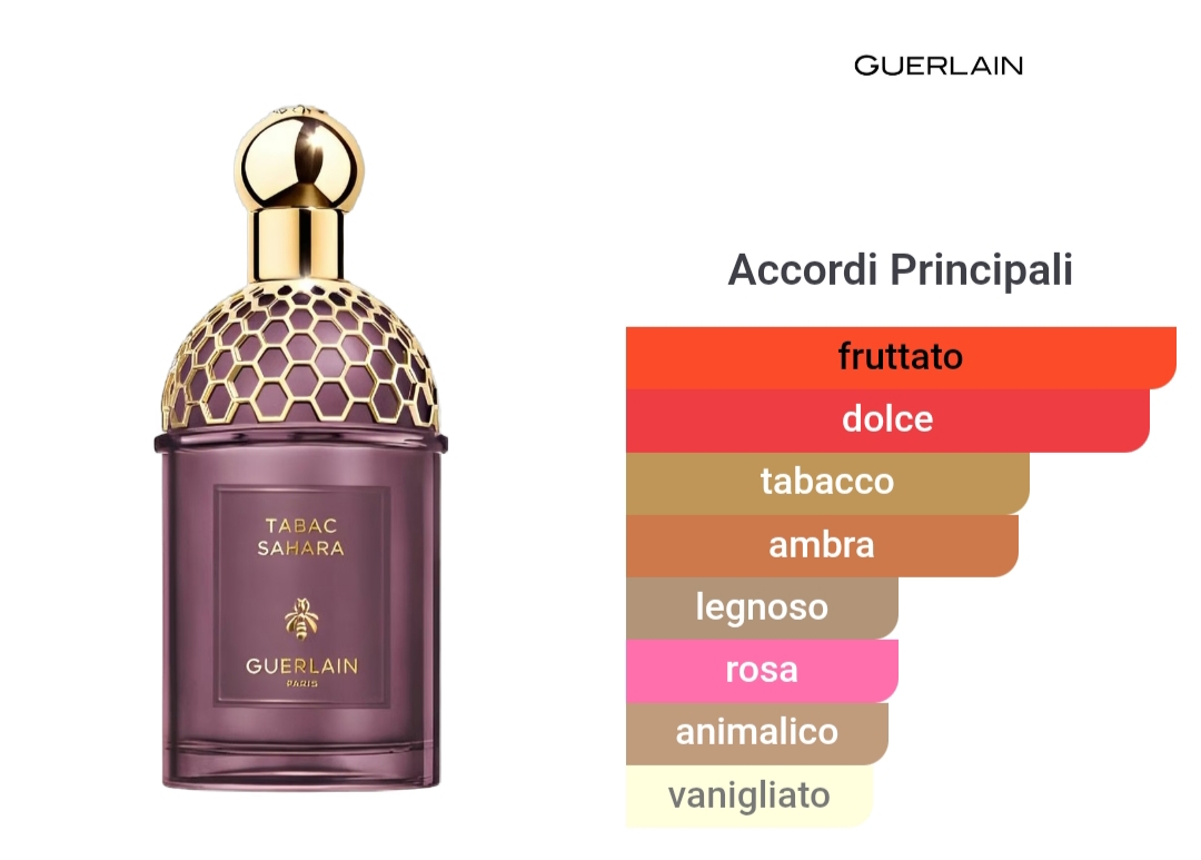 Le volute misteriose e fumiganti del Tabacco incontrano l'irresistibilità sensuale di un accordo di Lampone, esaltato dal calore di un accordo di Ambra Grigia. Con la sua freschezza acidula, il Frutto Rosso crea un vivace contrasto con le sfumature dorate del Tabacco, evocando una scia rosa che avvolge le dune al calar della notte.