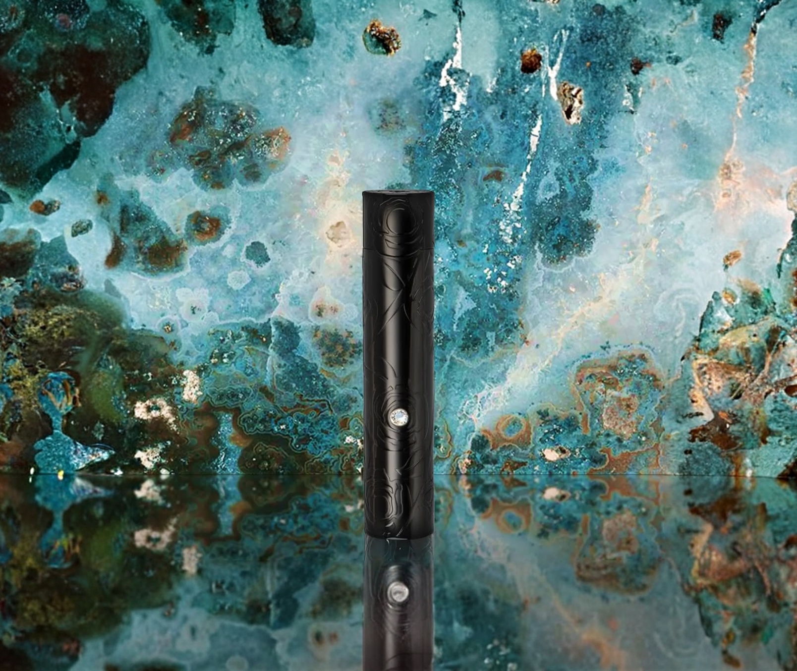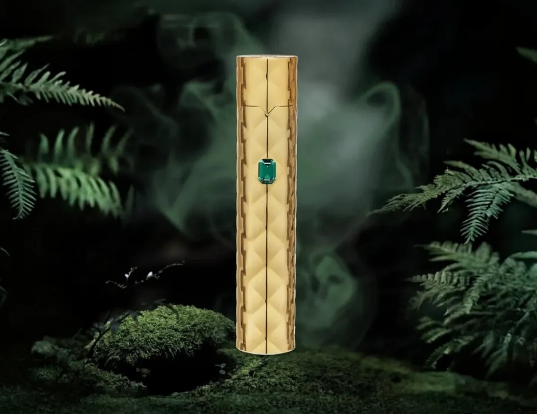 Un porta profumo in zama splendidamente inciso e decorato con una pietra Swarovski. Contiene un flacone da 50ml di Eau de Parfum.