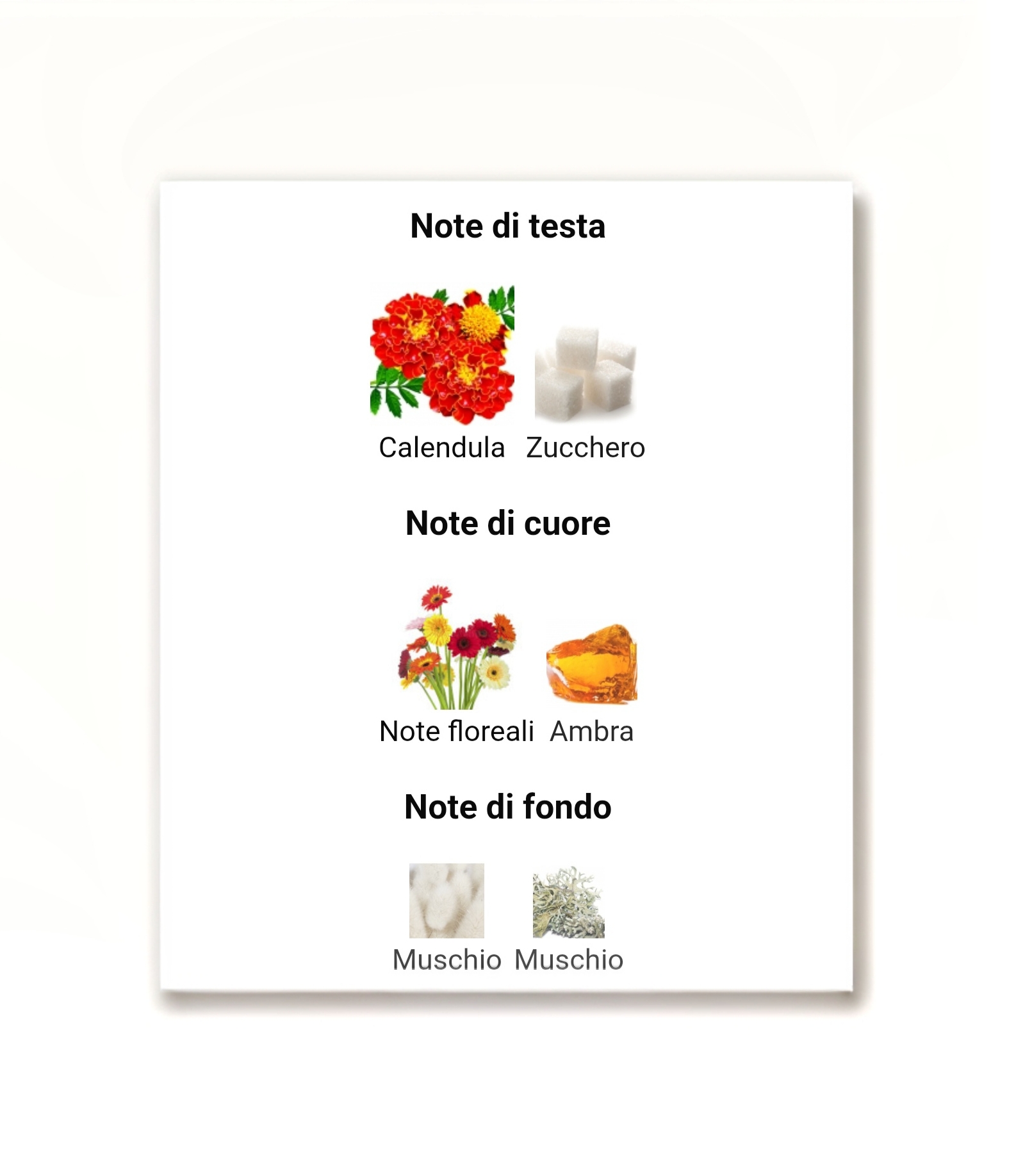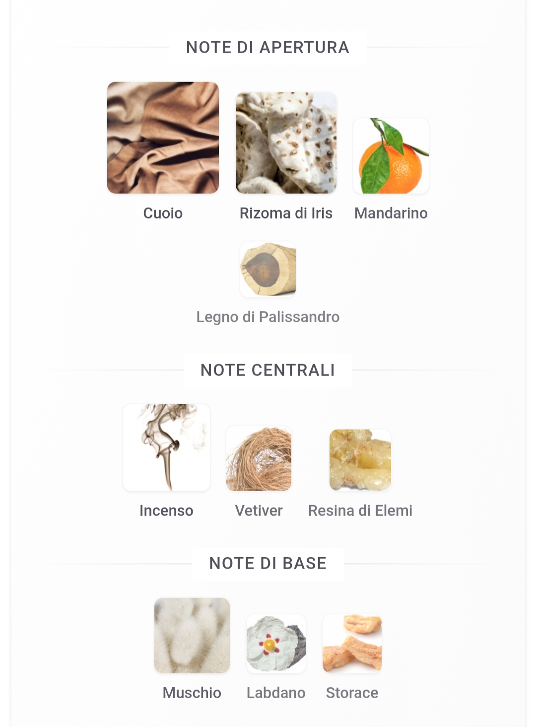 La base trasforma la fragranza in una vera ossessione dove i muschi abbracciano un accordo rassicurante di vaniglia.