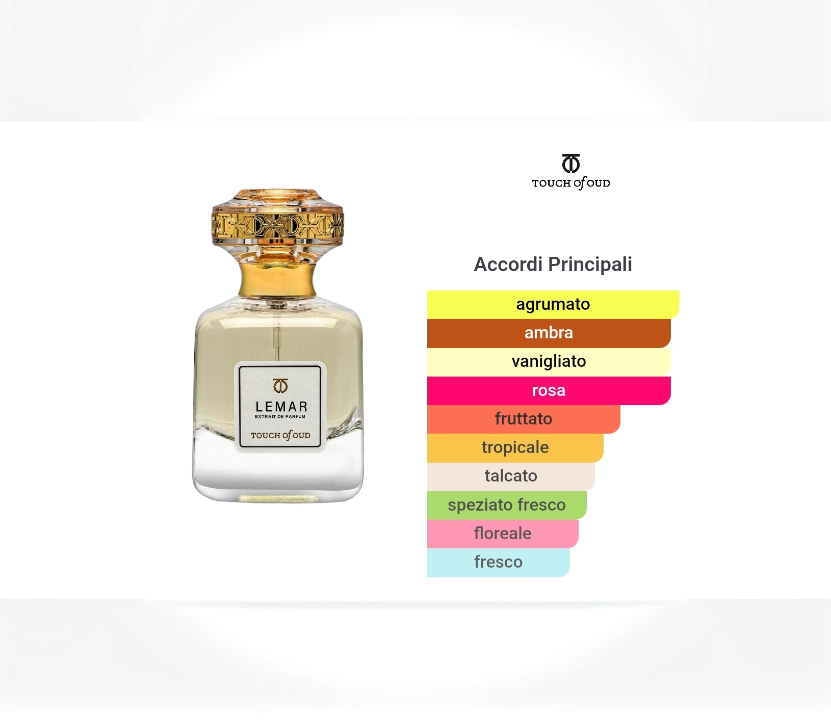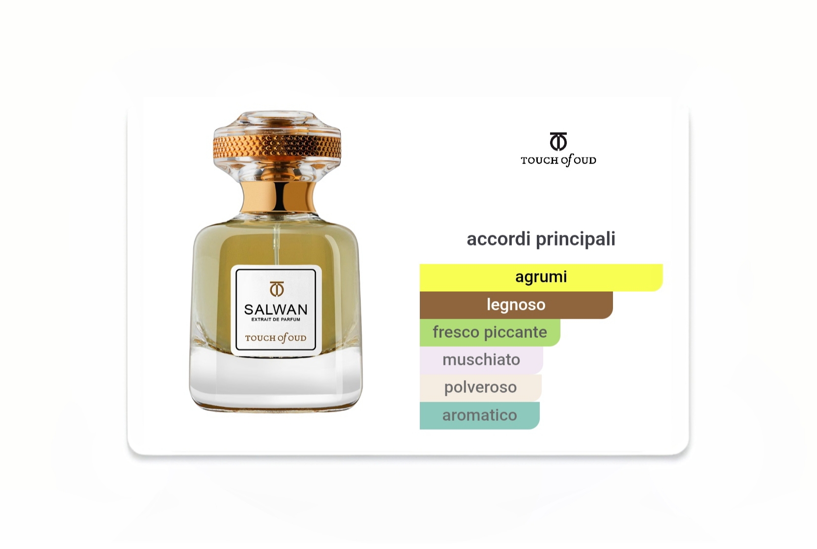 Un calore che ti tiene stretto.Si apre con un luccichio di agrumi, bergamotto e limone, luminoso come la luce del sole.